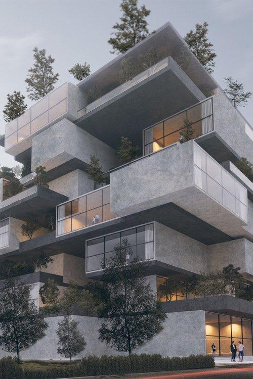 Our approach to the project is actually a critical one toward the design of typical residential houses we see in our cities today. These urban blocks are limited by urban construction rules (40/60), which are often in the form of a series of rigid boxes, without open spaces in the east and west, connected to the city only on one side. Due to its central location, this project allows a 360-degree view on the floors. In order to meet the desired function and also include old Iranian house type, the design has tried to address the problem at hand through taking up a contemporary view, extending old Iranian house type vertically on the floors in a fluid and active manner so as to create a range of flexible spaces. Moving from the existing strict framework toward activating a range of potentials in macro and micro scale provides us with an acceptable prototype of private, semi-private (balconies) and semi-public (in the form of a common yard and terrace in order to create a safe space for people to interact) spaces. This creates a platform for the residents to coexist, which is extended to all floors and organizes the main structure of the project. In fact, the façade does not have a separate identity. Façade is not just a skin; it is rather an integrated habitable space. The boxes are more compressed in the lower floors in an attempt to fit in with their neighboring houses, staying within project boundaries. However, as we go higher, the boxes become more expanded; and through sliding and cantilever, they try to talk with the city and gain a better view of the landscape. In fact, the border between inside and outside is a series of platforms, representing the possibility of enhancing the quality of every-day life.